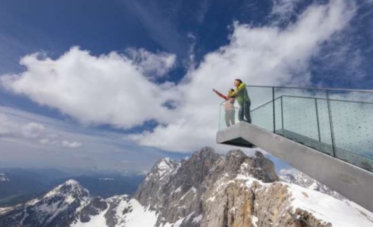 jedna z nejatraktivnějších vyhlídkových plošin v celých Alpách. Část podlahy je ze skla.